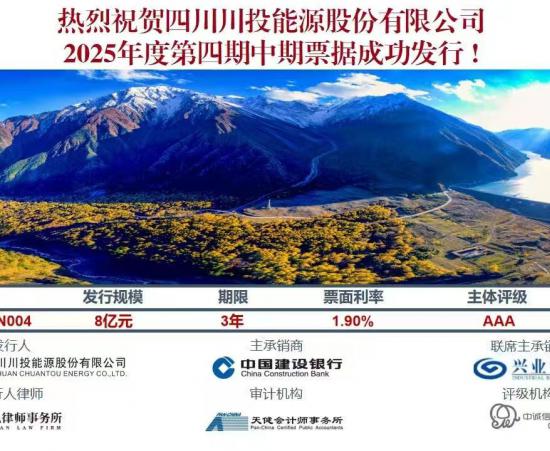 • 川投能源成功發行8億元中期票據2025.09.22